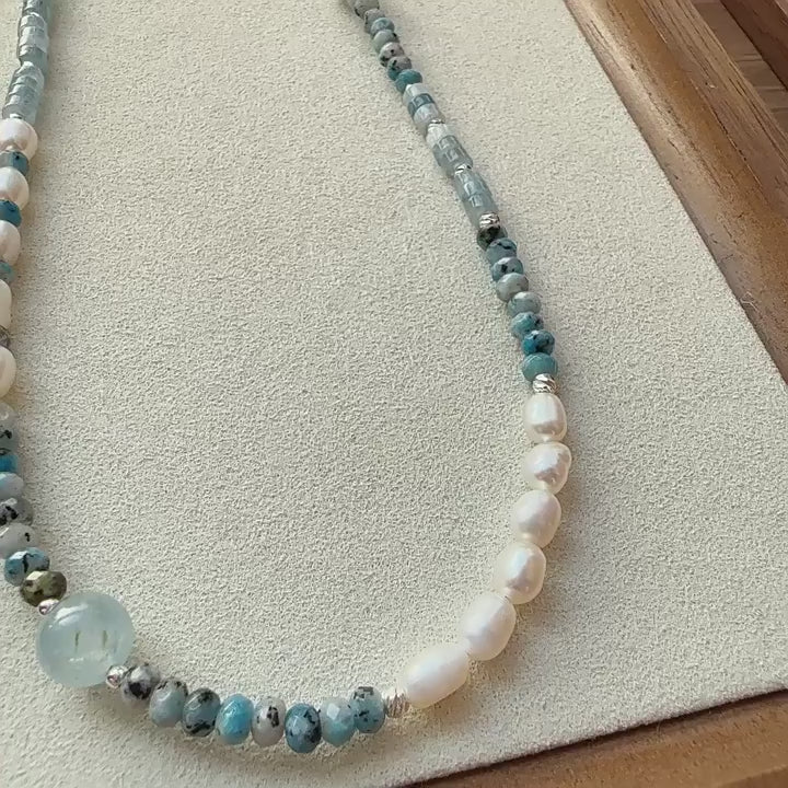Natural Gemstones: Genuine aquamarine beads (symbolizing clarity and calm) paired with haze blue baroque pearls for soft, iridescent contrast.